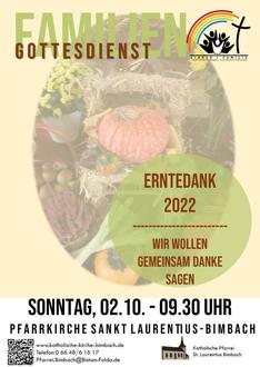 | Sonntag, 2. Oktober 2022 27. Sonntag im Jahreskreis - Erntedanksonntag | |