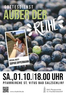 | 18.00 Uhr | Gottesdienst „Außer der Reihe“ zum Erntedank mit Sophie Oppermann |