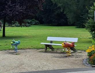 Im Bereich des Platzes vor dem Kulturkessel wurden ebenfalls Feder- Wipptiere errichtet; eines davon ist für die jüngsten Kinder gedacht. Eine sogenannte Moirè- Tafel, die auch Erwachsenen eine interessante optische Täuschung vermittelt wurde ebenfalls eingeweiht.
