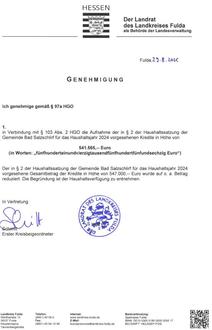 Die nach § 97a HGO erforderlichen Genehmigungen der Aufsichtsbehörde zu den Festsetzungen sind erteilt. Sie hat haben folgenden Wortlaut: