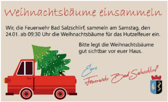 Die Weihnachtsbäume werden von der Freiwilligen Feuerwehr am Samstag, den 24.01.2026, morgens ab 09.30 Uhr abgeholt. Bitte legen Sie die Bäume rechtzeitig und gut sichtbar am Straßenrand bereit.