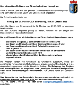 statt. Der Baum- und Strauchschnitt ist für Montag, den 27.10.2025 zur Abholung bereitzustellen.