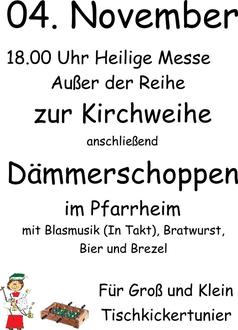 | 18.00 Uhr | Gro | Heilige Messe zum Verlobten Tag mitgestaltet durch den Kirchenchor |