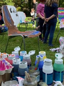 Für Groß und Klein war es ein erlebnisreicher Tag, an dem jeder seine künstlerischen Fähigkeiten einbringen konnte. Ausgestattet mit Farben, Pinseln und jeder Menge guter Laune verwandelten die Teilnehmenden alte Holzstühle in wahre Kunstwerke. Jeder Stuhl erzählte dabei seine eigene Geschichte, aber zusammen spiegelten sie die Vielfalt und den Zusammenhalt wider.