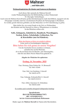 Auch dieses Jahr sammeln die Malteser Kerzell wieder Weihnachtspäckchen für Hilfsbedürftige in ihrer Partnerstadt Sf. Gheorghe/ Siebenbürgen.