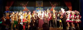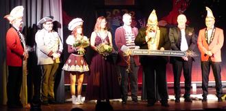 Eine weitere Überraschung und erstmalig in der Geschichte ist wohl die Verabschiedung von gleich zwei Tollitäten in einem Jahr. Prinz Thomas XXXIV. vom Elferrat - mit schillernden Raketen, Technik und Moneten (Thomas Tigges) und Prinzessin Sophia XI. das Goldstück aus Kalbach - von Garde und Hotelfach (Sophia Tigges) führten die Bad Salzschlirfer in 2019/2020 durch die fünfte Jahreszeit zusammen mit ihren beiden Adjutanten Daniel (Schreiner) und Leni (Anna Lena Hönig), sowie Tanzmariechen Julia (Pfeifer). Noch während der Amtszeit gab es Nachwuchs beim jung vermählten Paar und so war Jungprinz Milo (Tigges) bei der Verabschiedung erstmalig mit dabei.