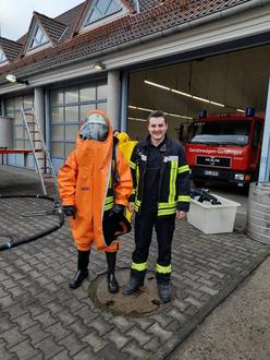 Zu Beginn der anspruchsvollen Fortbildung auf Standortebene wurden die Lehrgangsteilnehmer von Gemeindebrandinspektor Jürgen Reinhardt und Wehrführer Lukas Zein im Feuerwehrhaus Großenlüder begrüßt. Die Zusammenarbeit der sechs Ortsteilfeuerwehren der Gemeinde Großenlüder mit der Gemeinde Bad Salzschlirf im G-ABC Bereich hat eine lange Tradition. Durch die seit 2003 bestehende Ortsteil- und Gemeindeübergreifende Kooperation konnten auch in den Bereichen des abwehrenden Brandschutzes sowie der technischen Hilfeleistung positive Synergieeffekte zum Wohle der Freiwilligen Feuerwehren erreicht werden. Von den G-ABC Zugführer Simon Wohletz und Andreas Waldmann aus Großenlüder und Bad Salzschlirf wurden 10 Einsatzkräfte im Umgang mit Chemikalienschutzanzügen (CSA) ausgebildet. Die Durchführung des Atemschutzgeräteträger Teil 2 Lehrgang wurde von der örtlichen Wehrführung und Atemschutzgerätewarten unterstützt. Die gasdichten und gegen gängige Industriechemikalien beständigen Anzüge stellen den höchsten Schutz für Feuerkräfte im Einsatz mit gefährlichen Gütern und Stoffen im G-ABC Einsatz dar. Aufgrund des eingeschränkten Sichtbildes, des zusätzlichen Gewichts der Schutzkleidung sowie der damit einhergehenden gestiegenen körperlichen Belastung müssen die Feuerwehrangehörigen zusätzlich ausgebildet werden. Die Ausbildung bestand aus einer theoretischen und einer praktischen Schulung. Neben der Unterweisung im An-und Ablegen wurde die Kameraden hinsichtlich der Arten, Schutzwirkung und Einsatzgrenzen dieser Schutzanzüge ausgebildet. Im praktischen Teil stand die Gewöhnung an die Ausrüstung, das beschränkte Gesichtsfeld, die Kommunikation, welche nur mittels Sprechfunkgerät möglich ist sowie das zusätzliche Gewicht der Einsatzkleidung im Vordergrund. Im Rahmen des zweiten praktischen Ausbildungsteils wurde die körperliche Anstrengung der Teilnehmer durch einsatznahe Tätigkeiten, wie Umfüllen von Gefahrgut oder Abdichten einer Leckage, nochmals gesteigert. Nach dem für alle 10 Teilnehmer erfolgreichen Abschluss des Lehrgangs können die Einsatzkräfte nun mit der auch die Feuerwehr speziellen Schutzausrüstung im Einsatzfall mit gefährlichen Gütern und Stoffen zum Wohle der Bürger von Großenlüder sowie der anliegenden Gemeinden eingesetzt werden. Die Ausbildung fand am Feuerwehrstützpunkt Großenlüder bei herrlichem Spätsommerwetter statt. Besten Dank an die Ausbilder den Kameraden Simon Wohletz und Andreas Waldmann für ihre Initiative und Einsatz.