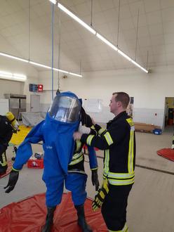 von 10 Einsatzkräften zum Tragen von Chemikalienschutzanzügen der Feuerwehren aus Großenlüder und Bad Salzschlirf.