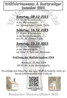 | 17.00 Uhr | Bim | Gemeinsames Adventskonzert der Bimbacher Musikanten, dem Männergesangverein und dem Frauenchor Bimbach |
