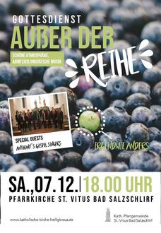 | 18.00 Uhr | Gottesdienst „Außer der Reihe“ unter Mitwirkung der Anthony’s Gospel Singers Müs |