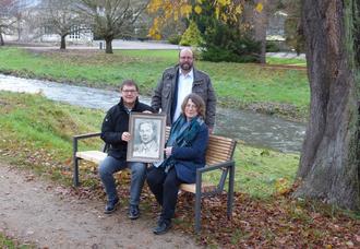 Fritz Severin starb im Jahr 2021, ohne dass sein Wunsch erfüllt werden konnte. Seine Kinder Christina Frank, Martin Severin und Ulrich Severin griffen das Thema nach dem Ende der Corona-Epidemie auf und beschafften in Kooperation mit Herrn Bürgermeister Kübel eine Parkbank. Sie wird an zentraler Stelle in der Lindenstraße am Flussbett der Altefeld ihren Platz finden. Unser Foto zeigt die Übergabe der Bank an Bürgermeister Kübel durch Christina Frank und Ulrich Severin.