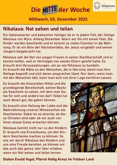 | Samstag, 6. Dezember 2025 Hl. Nikolaus | |||