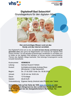 Anmeldung bitte auf der Seite der VHS www.vhs-fulda.de oder