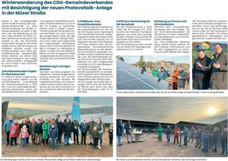 Bereits in den zurückliegenden Jahren ist die Einladung des CDU-Gemeindeverbandes zu einer Winterwanderung auf großes Interesse gestoßen; so auch in diesem Jahr. Die Wanderung, an der auch viele Familien mit ihren Kindern teilnahmen, führte durch den Kurpark zu der neu errichteten Photovoltaik-Anlage an der Müser Straße, die von der FW Gruppe aus Hofbieber errichtet wurde und künftig betrieben wird. Deren geschäftsführender Gesellschafter, Florian Wehner, war erfreut über das rege Interesse an der Anlage, die zwischenzeitlich fertiggestellt ist und in Kürze in das Stromnetz einspeisen wird.