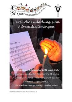 | 16.00 Uhr | Gro | Adventsliedersingen in der Pfarrkirche |