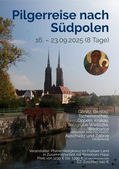 Über das Pfarrbüro können Sie sich anmelden. Herzliche Einladung zur Pilgerreise der Pfarrei Heilig Kreuz im Fuldaer Land.