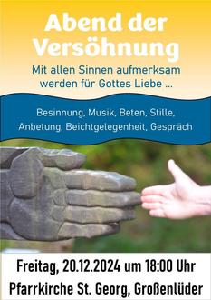 | 18.00 Uhr | Gro | Abend der Versöhnung mit Beichtgelegenheit bei verschiedenen Priestern |