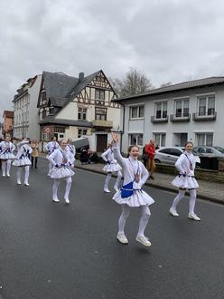 Die Tanzgruppen des Karnevalvereins, Konfettigarde, Sternschnuppen, Diamonds, Funkengarde sowie Junioren- und Prinzengarde waren am Sonntag zu Fuß unterwegs. Sie wurden verstärkt vom Club Närrischer Weiber und den kfd-Fastnachtsfrauen. Die Freiwillige Feuerwehr Bad Salzschlirf sicherte als Zugwächter den Verkehr, während Elferrat und Prinzliche Leibgarde den Prinzenwagen begleiteten. Vom Wagen grüßten neben dem Prinzenpaar samt Adjutanten Uwe (Gies) und Thomas (Geistdörfer) auch Prinzenmariechen Lena (Schnell) und das Kinderprinzenpaar Anton und Franziska (Bornträger) mit ihren Adjutanten Benjamin und Sophie (Gies) und Tanzmariechen Paula (Geistdörfer) das Publikum.