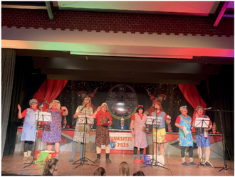Neben Tanzdarbietungen sorgten auch humorvolle Beiträge für ausgelassene Stimmung. Dabei war wieder einmal die volle Vereinspower von Bad Salzschlirf zu spüren. Die Frauen der kfd und des Clubs Närrischer Weiber trugen ebenso mit unterhaltsamen Auftritten zum Abend bei wie die Freiwillige Feuerwehr, die mehrfach im Einsatz auf der Bühne war. Elferrat, Martinygarde sowie Familie und Freunde der Prinzenmannschaft rundeten das Programm mit abwechslungsreichen Sketchen ab. Hinter den Kulissen sorgte die Leibgarde für einen reibungslosen Ablauf.