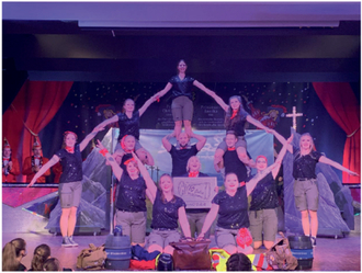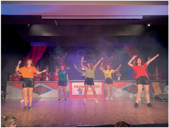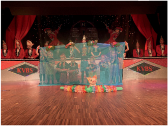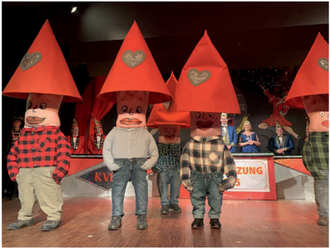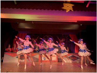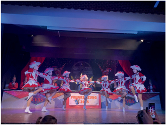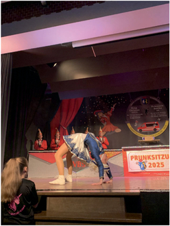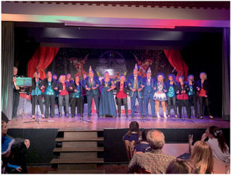 Kaum war die letzte Regel verkündet, ging es auch schon los mit einem Feuerwerk an Sketchen, Büttenreden und Tänzen. Die vereinseigenen Tanzgruppen – Minigarde, Einhorn-Glitzer-Garde, Konfettigarde, Sternschnuppen, Diamonds, Juniorengarde, Prinzengarde – und Prinzenmariechen Franzi zeigten eindrucksvoll, dass Tanz und Karneval unzertrennlich sind. Für eine besondere Überraschung sorgte ein Auftritt der Showtanzgruppe „Shotz“ aus Petersberg, für den Prinzessin Annika ihr Kleid gegen ein Wanderoutfit eintauschte und voller Elan mittanzte.