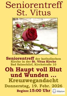 | 15.00 Uhr | Kreuzwegandacht – gestaltet vom Seniorentreff St. Vitus |