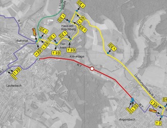 Für Radfahrende führt die Umleitung vorbei am Lauterbacher Tierheim und dem Haus am Kirschberg ans jeweilige Ziel. Die Umleitungsstrecke wird zuvor hierfür eigens instandgesetzt.