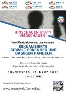 Aufgrund der aktuellen Ereignisse in der Region hat sich der KEA SÜW mit weiteren Kreis- und Stadtelternausschüssen zusammengeschlossen und lädt alle Eltern, Fachkräfte, Träger und sonstige Interessierten zur einem Online-Infoabend ein: