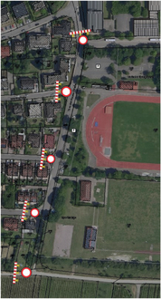 | - | In der Theodor-Heuss-Straße an den Einmündungen Pestalozzistraße, Haydnstraße, Mozartstraße und Beethovenstraße |