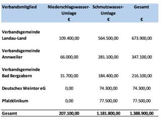 | Auf die Verbandsmitglieder entfallen für die Finanzierung der laufenden Kosten folgende Umlagebeträge, die gemäß § 13 Abs. 1 Verbandsordnung als Vorauszahlungen festgesetzt werden: |