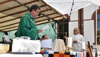 Sie hat sich nach einem Gespräch mit Pfarrer Bernd Höckelsberger bewusst für diese Pfarrei entschieden und fühlte sich schon damals herzlich aufgenommen. Im Festgottesdienst des Fröhlichen Kunterbunt, am 4. September wurde sie von Pfarrer und Pfarreirat willkommen geheißen und der Gemeinde vorgestellt. Sie stammt aus Eppenbrunn in der Verbandsgemeinde Pirmasens-Land, ist Anfang dreißig und nach dem Abitur in Pirmasens in Mainz und München katholische Theologie studiert. Im August 2017 wurde sie im Dom zu Speyer von Bischof Wiesemann als Pastoralreferentin ausgesandt. In der Pfarrei Hl. Elisabeth in Zweibrücken fand sie 2017 ihre erste seelsorgerische Heimat. „Die Freude an Gott war und ist die treibende Kraft meines ganzen Lebens.“ Pfarrer Höckelsberger begrüßte Nina Bender herzlich, verlas den Brief des Bischofs, der Nina Bender der Pfarrei Hl Edith Stein zuwies und überreichte ihr symbolisch einen Engel, der bei ihren seelsorgerischen Aufgaben an ihrer Seite sein möge. Er wünschte ihr „ad multos annos“, also viele Jahre hier in Bad Bergzabern Er werde gerne ihr Mentor sein. Als Willkommensgruß überreichte Pfarreiratsvorsitzende Doris Ehrhardt Nina Bender ganz traditionell Salz und Brot in ihrem neuen Haus Gottes. In einem Vorgespräch habe sie ihr gesagt, sie freue sich auf die Arbeit mit Kindern und Jugendlichen, besonders also auf die Erstkommunion- und Firmkatechese, nicht zu vergessen die Betreuung der Messdiener. Auch Menschen in ihrer Trauer zu begleiten, sei ihr ein Anliegen, sie werde auch Beerdigungen vornehmen. „Sie werden uns also auf vielfältige Weise in unserer großen Pfarrei begegnen. Wir freuen uns darauf“, schloss Doris Ehrhardt.