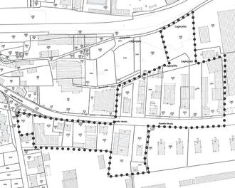 Im Osten durch die Grundstücksgrenze des ehemaligen DEMAG-Geländes, im Westen durch die Stellplätze des Edeka-Parkplatzes und im Norden durch den Mühlgraben (Fl.St.Nr. 2420) bzw. den unbefestigten Grundstücken mit Grünflächen.