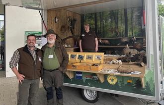 Die Dillkreisjäger informierten vor dem Kreishaus mit ihrer „Rollenden Waldschule“