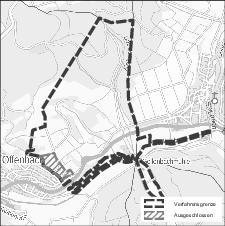 | Dies betrifft weiterhin die Grundstücke Gemarkung Bischoffen Flur 6 Nr. 94 und 95 sowie Gemarkung Offenbach Flur 17 Nr. 128, 143, 150, 158 und 159. Diese wurden mit dem 3. Änderungsbeschluss zum Verfahren zugezogen. |