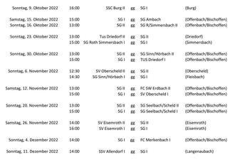 Spiel- und Sportverein Niederweidbach/Roßbach - Spielplan SG Aartal Saison 2022/23 Teil 2