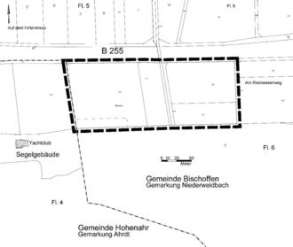 Der östliche Geltungsbereich, rd. 18.600 m² groß, verläuft im Osten auf einer Länge von rd. 140 m entlang der L3053. Der nördliche Geltungsbereichsrand dieser Teilfläche liegt rund 100 m vom Rand der B255 entfernt.