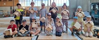 Anfang Juni 2023 lud der örtliche Zimmereibetrieb "Schmidt Holzbau" die Vorschulkindergruppe "Schlaue Haie" der KiTa Marienkäfer in seine Werkshalle in Niederweidbach ein. Michaela Schmidt und Marco Krämer hatten zuvor zahlreiche Bausätze für Nistkästen vorbereitet und so wurde an diesem Samstagvormittag im Anschlußss an die Übernachtung in der KiTa fleißig gehämmert, gesägt und montiert. Bei Capri-Sonne und Knabbereien entstanden unter Anleitung der Familie Schmidt/Krämer kleine Wohnungen für unsere heimischen Vögel. Natürlich waren die jungen Zimmermänner und -frauen begeistert von der Aktion und ihrem Beitrag für unsere Natur. Ihre Werkstücke im Gepäck, ging es für die Vorschüler gegen Mittag per Firmentransfer zu einem Gartengrundstück, wo nach einer Stärkung mit selbstgemachter Pizza, die Vorschulkinder einen Einblick von Imker Marc Wenkittl in das Leben unserer Honigbienen erhielten. Sie erfuhren, wie wichtig diese für die Natur und uns Menschen sind, wie sie leben und welche Aufgaben die verschiedenen Bienen haben. Auch einen richtigen Imker-Anzug gab es zu sehen und natürlich durfte der frische Honig direkt aus der Wabe probiert werden. Eine turbulente Wasserschlacht für die Kinder und das gemütliche Beisammensein der Eltern bildeten bei herrlichstem Juni-Wetter den gelungenen Abschluss.