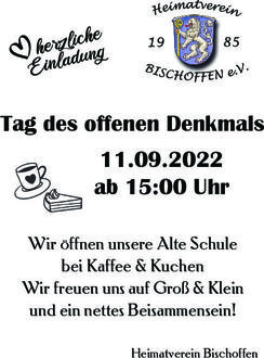 Einladung zum Tag des offenen Denkmals Bischoffen