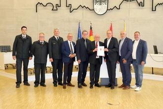 "Gerade im vergangenen Jahr haben wir gesehen, wie wichtig die Arbeit der Feuerwehren bei uns ist. Mit über 3.000 Einsatzkräften hat der Brand bei Haiger-Roßbach gezeigt, wie der Überörtliche Brandschutz greift: mit einer gut koordinierten Zusammenarbeit der Einsatzkräfte und dem entsprechenden Equipment", erklärt Wolfgang Schuster, als er den Bescheid entgegennimmt. "Wir haben aus diesem Großbrand viel gelernt", ergänzt Roland Esch. "So wurden danach Kugellöscher für den Überörtlichen Brandschutz angeschafft und auch der Gerätewagen ergänzt das Equipment und die Arbeit unserer Abteilung für Brandschutz, Rettungsdienst und Katastrophenschutz hervorragend", so Esch weiter.