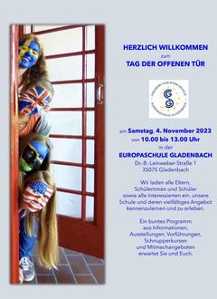 der Übergang in eine weiterführende Schule und der Wechsel in eine neue Schulform sind ein großer Schritt für Schülerinnen und Schüler und ihre Eltern. Um Ihnen und euch die Entscheidung für eine geeignete Schule zu erleichtern, öffnet die EUROPASCHULE GLADENBACH am 4. November 2023 von 10.00 bis 13.00 Uhrihre Türen und gibt somit allen interessierten Schülerinnen und Schülern sowie deren Eltern die Gelegenheit, unsere Schule in ihrer Vielfältigkeit kennenzulernen und zu entdecken.
