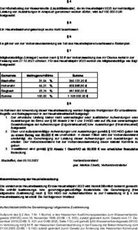 Mitgliedsbeiträge (Umlagen) werden nach § 30 ff der Verbandssatzung des AV Oberes Aartal in der Fassung vom 27.10.2021 erhoben. Für das Haushaltsjahr 2023 werden die Mitgliedsbeiträge wie folgt festgesetzt: