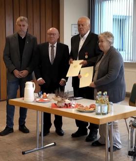 Brigitte und Otto Köpge aus Niederweidbach durch Landrat Wolfgang Schuster mit dem Dienstorden der BRD ausgezeichnet, welches eine von mehreren Formen des Bundesverdienstkreuzes darstellt.