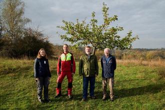 Teilnehmende bei der Kronenerziehung eines Jungbaums