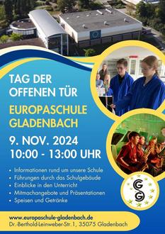 Als digitale und MINT-freundliche Schule sowie als Botschafterschule des Europaparlaments bietet die Europaschule Gladenbach auch in den weiterführenden Schulformen zahlreiche Möglichkeiten und Angebote, die wir am Tag der offenen Tür vorstellen.