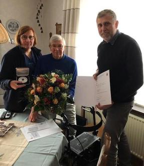 Bürgermeister Marco Herrmann besuchte Frau Kraft am 2. Dezember 2022 zu Hause in Wilsbach und würdigte ihr enormes Engagement. Im Auftrag des Sozialministeriums überreichte Bürgermeister Marco Herrmann die Pflegemedaille des Landes Hessen sowie einen Blumenstrauß.