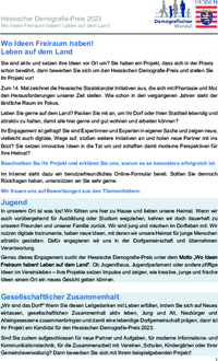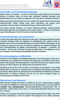 Weitere Informationen zum Hessischen Demografie-Preis 2023 sowie den Bewerbungsbogen finden Sie im Internet unter: www.hessen.de