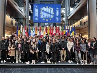 Erster Programmpunkt war der Besuch im Europäischen Parlament. Mittels einer Führung und eines interaktiven Museums lernten die Schüler*innen neben dem Aufbau des Gebäudes, den Plenarsaal sowie die Tätigkeiten und Arbeitsweisen der Abgeordneten kennen.