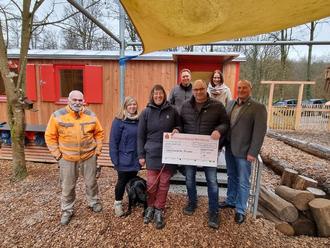 Die Firma Hohm Forst- und Baggerbetrieb übergab dem Team der Waldkita während der Einweihung einen Spendenscheck in Höhe von 800 Euro. „Ich bedanke mich herzlich bei Peter Hohm für diese großzügige Spende. Was davon Schönes angeschafft wird, überlegen wir als Team gemeinsam mit unseren Kindern“, stellt Kitaleiterin Sabine Zöller in Aussicht.