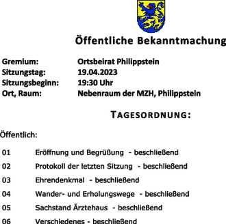 | Gremium: | Ortsbeirat Philippstein |
