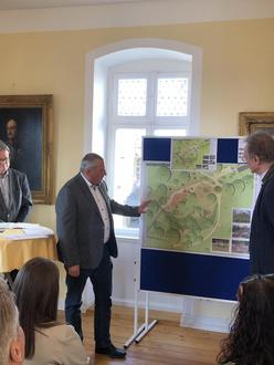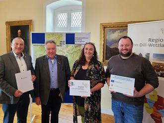 Startschuss für ein innovatives Projekt: Die Stadt Braunfels plant die Errichtung eines Mehrgenerationenspielplatzes im Kurpark. Für dieses zukunftsweisende Projekt wurde nun der offizielle Fördermittelbescheid des europäischen Regional-Förderprogramms LEADER in Höhe von rund 200.000 Euro durch den Ersten Kreisbeigeordneten Roland Esch an Bürgermeister Christian Breithecker und Christian Eckhardt, Fachdienstleiter Recht und Vergabe, überreicht. Die Übergabe fand im historischen Schloss Braunfels statt. Insgesamt werden sechs Projekte aus dem Lahn-Dill-Kreis durch die LEADER-Region Lahn-Dill-Wetzlar gefördert. Alle sechs Förderbescheide wurden in Braunfels übergeben.