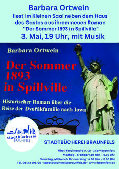 Am Mittwoch, den 3. Mai, 19 Uhr stellt die Autorin Barbara Ortwein ihr neues Buch DER SOMMER 1893 IN SPILLVILLE in der Stadtbücherei Braunfels vor.